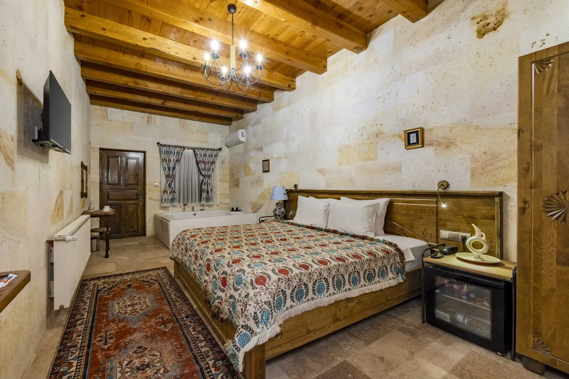 Experience a fairy-tale stay in Çavuşin, the heart of Cappadocia. Sara Cave blends authentic luxury with warm hospitality. Relax in our special jacuzzi and terrace suites, and create unforgettable memories with hot air balloon rides and jeep safari tours. We invite you to live this magical experience.