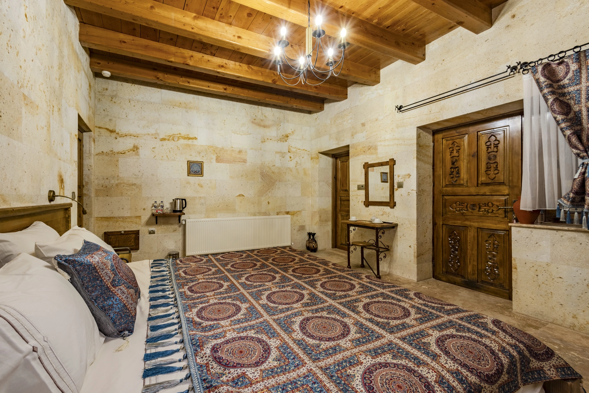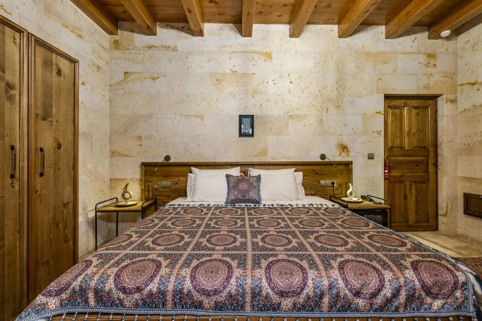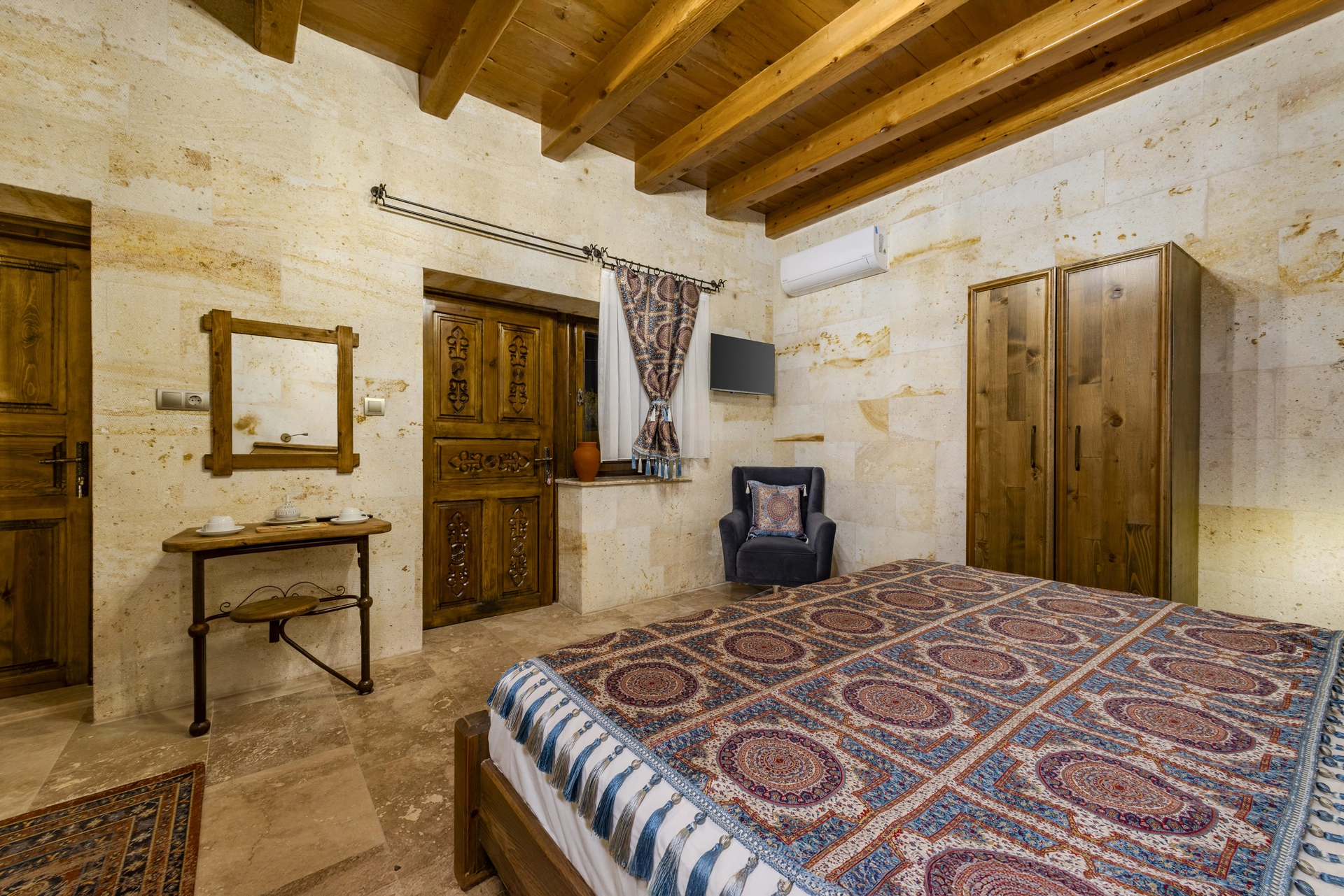 Welcome to room 106, our Deluxe Double King Stone, distinguished by its elegant stonework at the Sara Cave hotel. In this room, where traditional architecture perfectly harmonizes with modern luxury, you will feel part of Cappadocia's authentic atmosphere while relaxing on a comfortable double bed. This room is designed to offer our guests both a relaxing and a privileged accommodation experience.