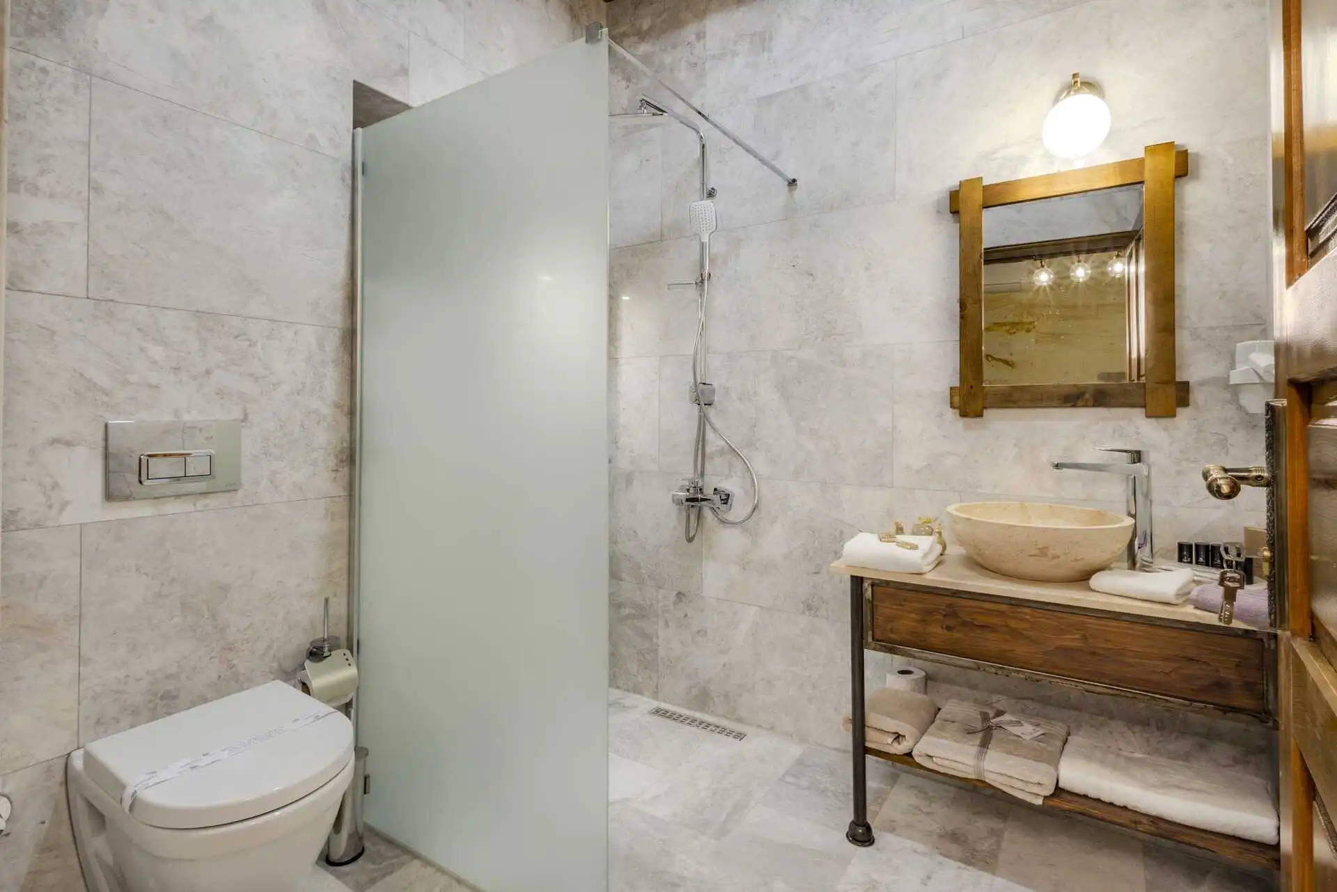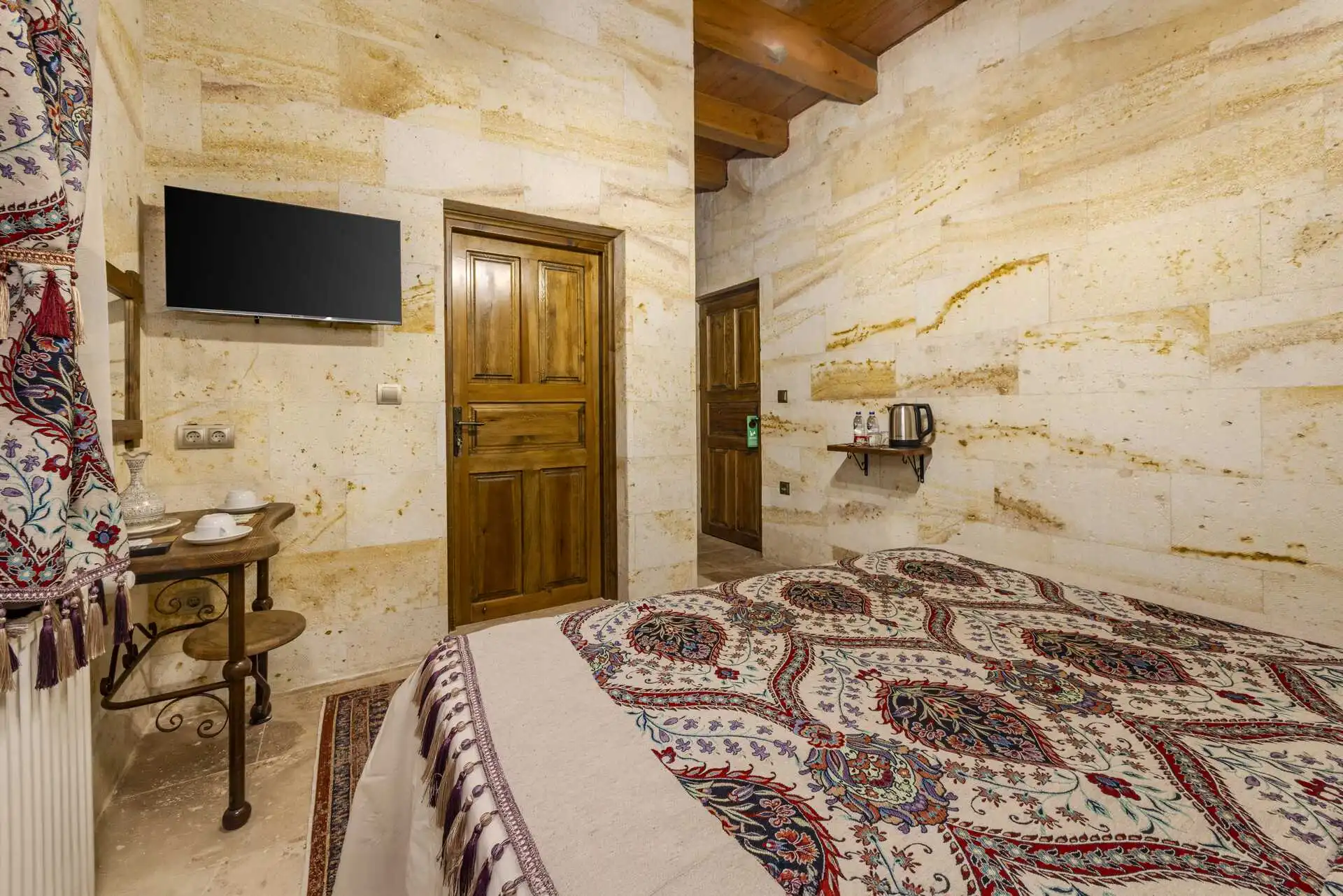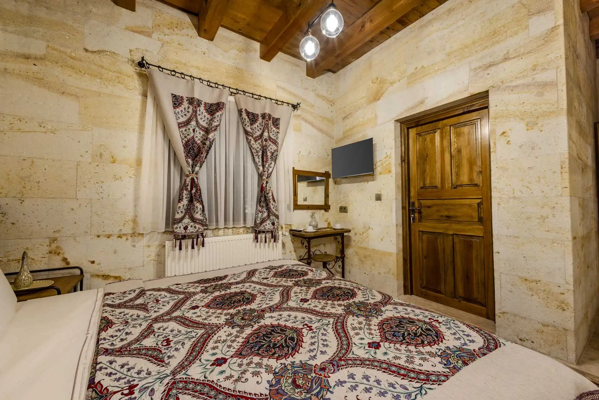 Welcome to room 109, our Deluxe Double Stone, featuring an authentic and peaceful atmosphere at the Sara Cave hotel. In this room, where traditional stone architecture is enriched with modern touches, you can rejuvenate yourself by relaxing on a comfortable double bed. With its simple and elegant decor, this room offers you a tranquil escape.